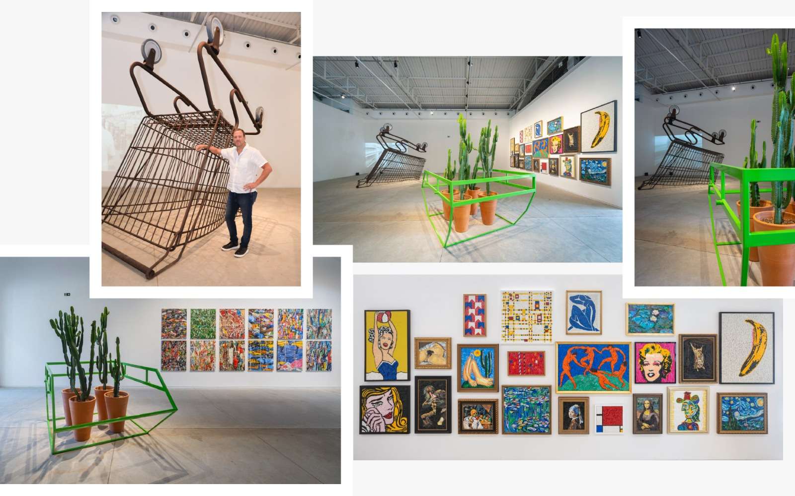 A série Natureza Plástica, de Eduardo Srur, recria pinturas clássicas usando apenas sacolas plásticas recolhidas das ruas. A partir dela, os eixos consumo e descarte ficam em destaque. O consumo aparece na obra Mercado, instalada próxima ao vídeo Supermercado, criando uma relação visual entre os dois trabalhos. O descarte é representado pela série Fardos, que mostra o processo de reciclagem, e pela instalação Caçambas, que denuncia os impactos dos resíduos no meio ambiente e na vida das pessoas. Porém, aqui, foram colocadas plantas para convidar o público a pensar sobre o futuro e sobre os impactos sociais e ambientais dos resíduos jogados fora de forma errada. O trabalho que nasceu da relação com a cidade se espalha por Porto Alegre, conectando a obra de Eduardo com o espaço urbano e a exposição.
